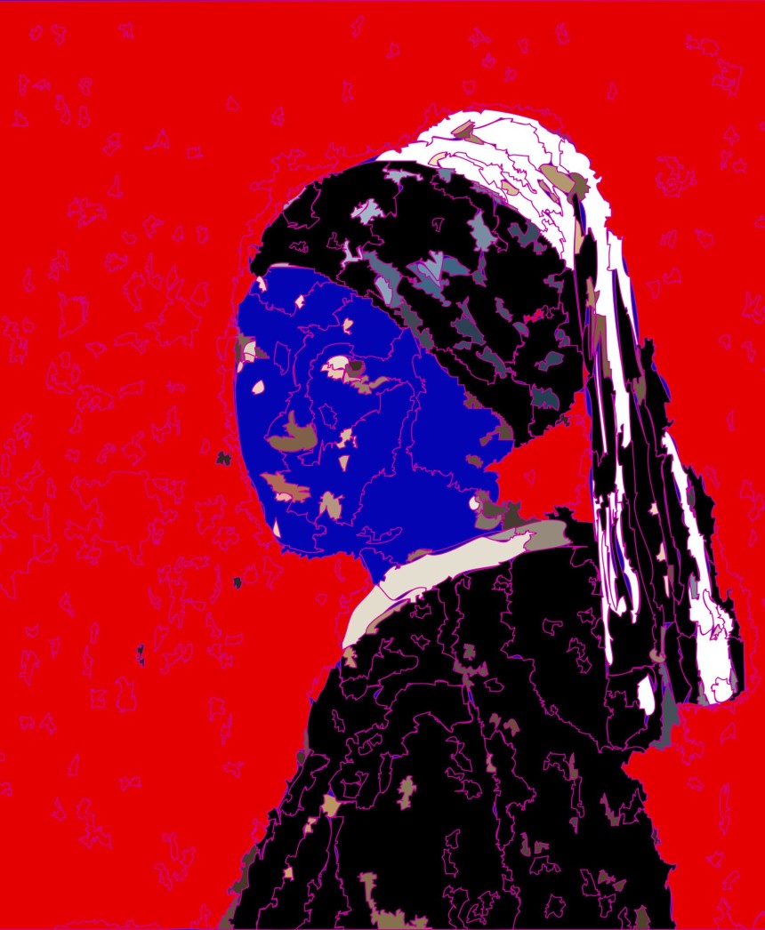 Cosmic Bagels, I Lost My Earring. [2024] Reference: Johannes Vermeer Girl with a Pearl Earring. [c. 1665.]
